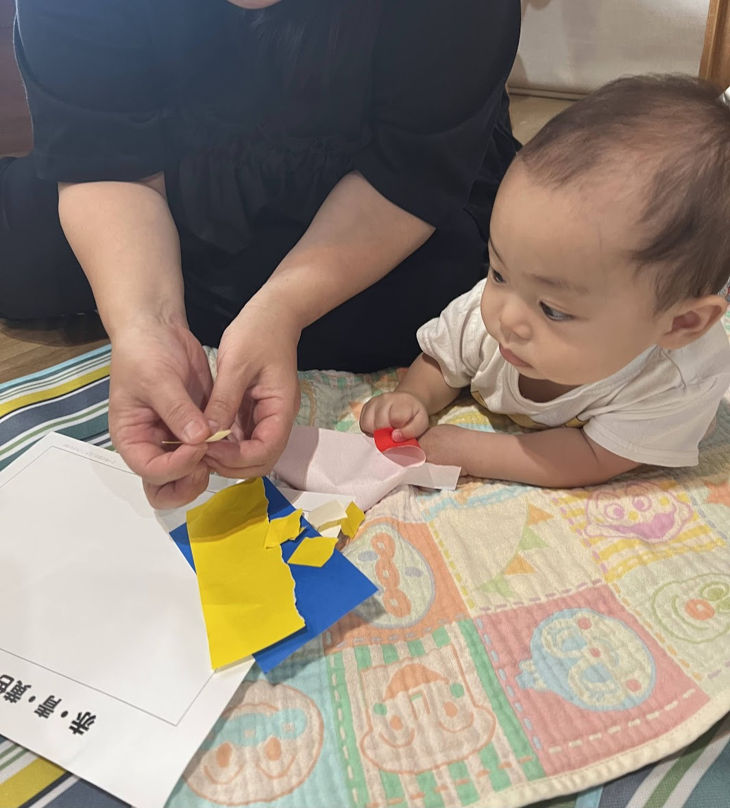 赤ちゃんと”はじめての色あそび”ができるお教室。0歳2か月の赤ちゃんより親子で色を通して、絵本・数・文字・名文・動き・音・触感・色彩心理・色彩理論に触れて、学びの土台となる知的好奇心を育みます。お子さん一人ひとりの「好き・楽しい」に注目し、丁寧に言葉がけをしていきます。